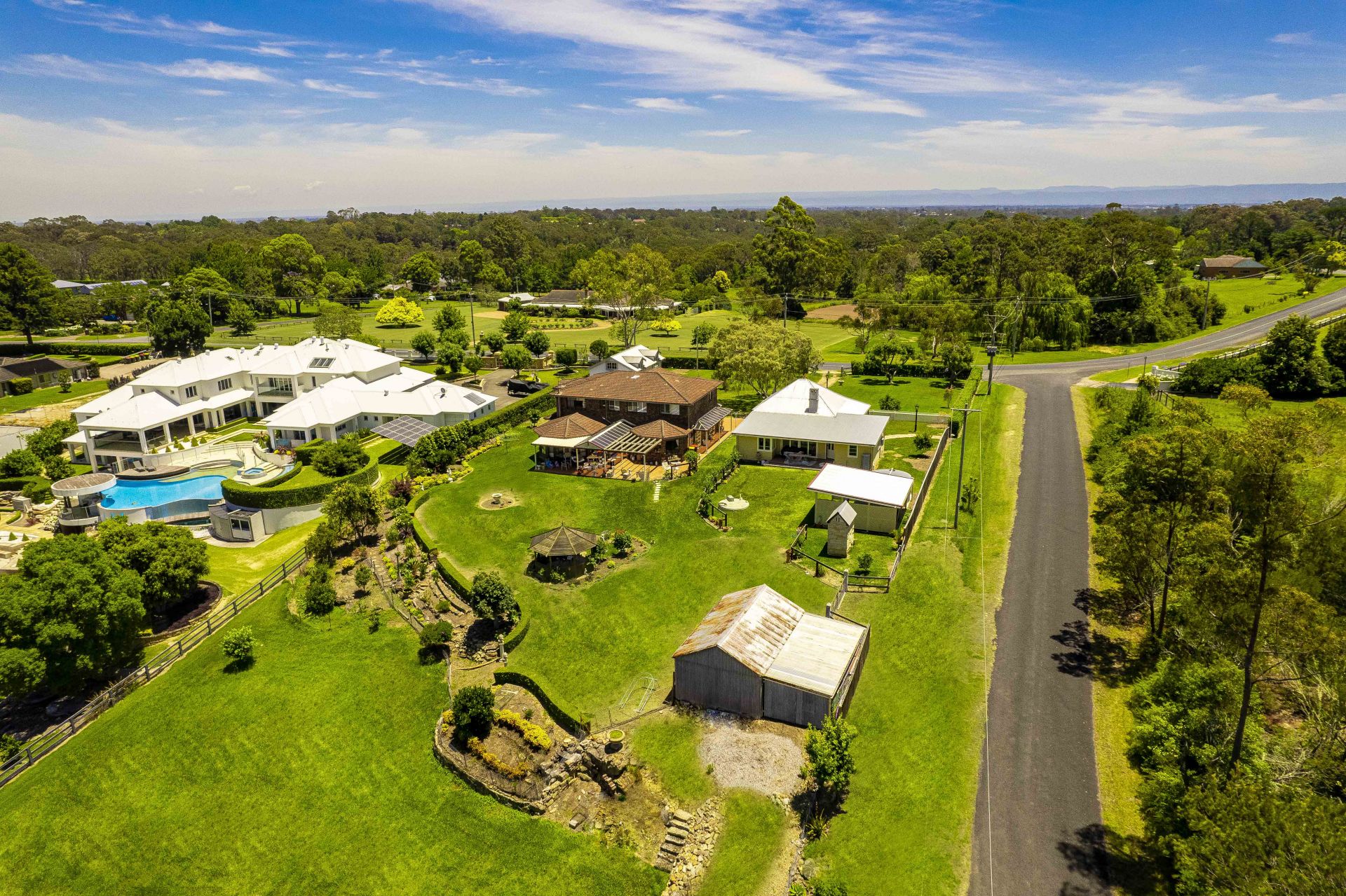 Positioned behind well-established hedging is this lovely acreage estate with two homes on 2.4 acres.