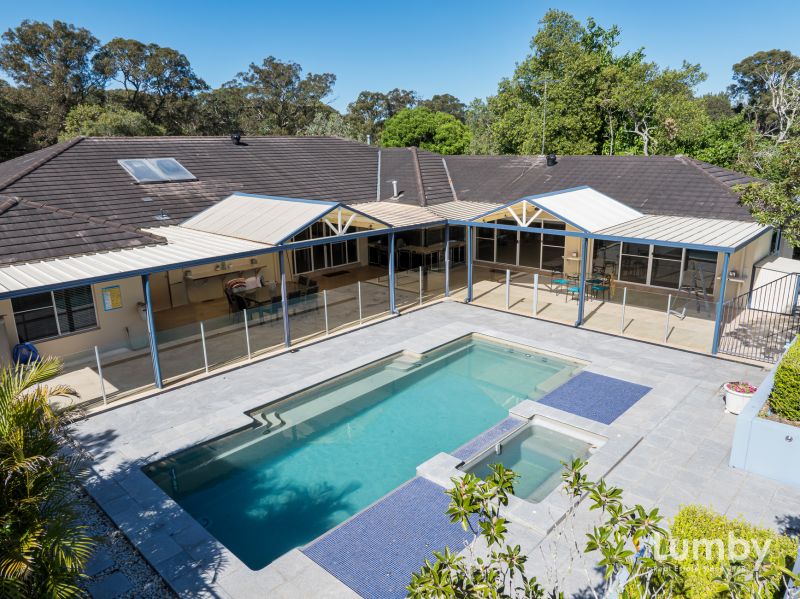 Entertainment is a given, with a huge games room and an expansive covered outdoor entertaining space, featuring a stunning built-in barbeque and finished with shelving, overlooking the sparkling inground swimming pool – perfect for summer gatherings and long, lazy afternoons.